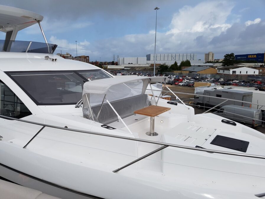 The Bimini Foredeck Canvas is supplied as original, manufactured from a choice of Sunbrella colours… The Bimini Foredeck, is designed to create Sun Shade to the Foredeck seating.