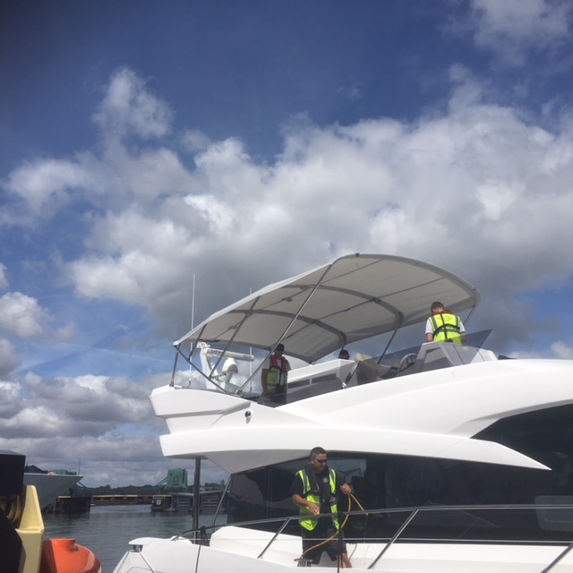 The Bimini Top Canvas is supplied as original, manufactured from a choice of Sunbrella colours… The Bimini Top, is designed to create Sun Shade to the Flybridge. For this product you need to select the correct options so that it matches your framework – with the LED lighting, and the Hydraulic Operation Upgrade…