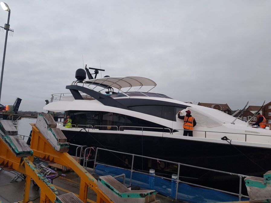 The Bimini Top Canvas is supplied as original, manufactured from a choice of Sunbrella colours… The Bimini Top, is designed to create Sun Shade to the Flybridge. For this product you need to select the correct options so that it matches your framework – with the LED lighting, and the Hydraulic Operation Upgrade…
