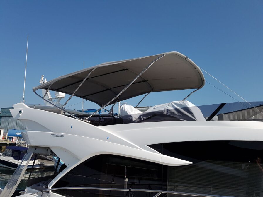 The Bimini Top Canvas is supplied as original, manufactured from a choice of Sunbrella colours… The Bimini Top, is designed to create Sun Shade to the Flybridge. For this product you need to select the correct options so that it matches your framework – with the LED lighting, and the Hydraulic Operation Upgrade…