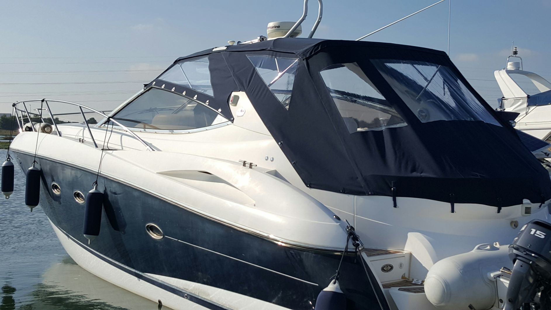 Due to variations of cover designs during the build of this model we cannot guarantee that all the fittings will match your boat 100% therefore we can supply a 80% finished cover which will need some sewing work to complete. The cover will have all the windows and zips installed, along with the luff tape attached to the top section, but professional assistance will be required to finish the bottom edges where the cover attaches to the boat and the fixings installed. All the parts, fittings and tools are supplied to complete this work. (see fitting instructions for types of fixings)