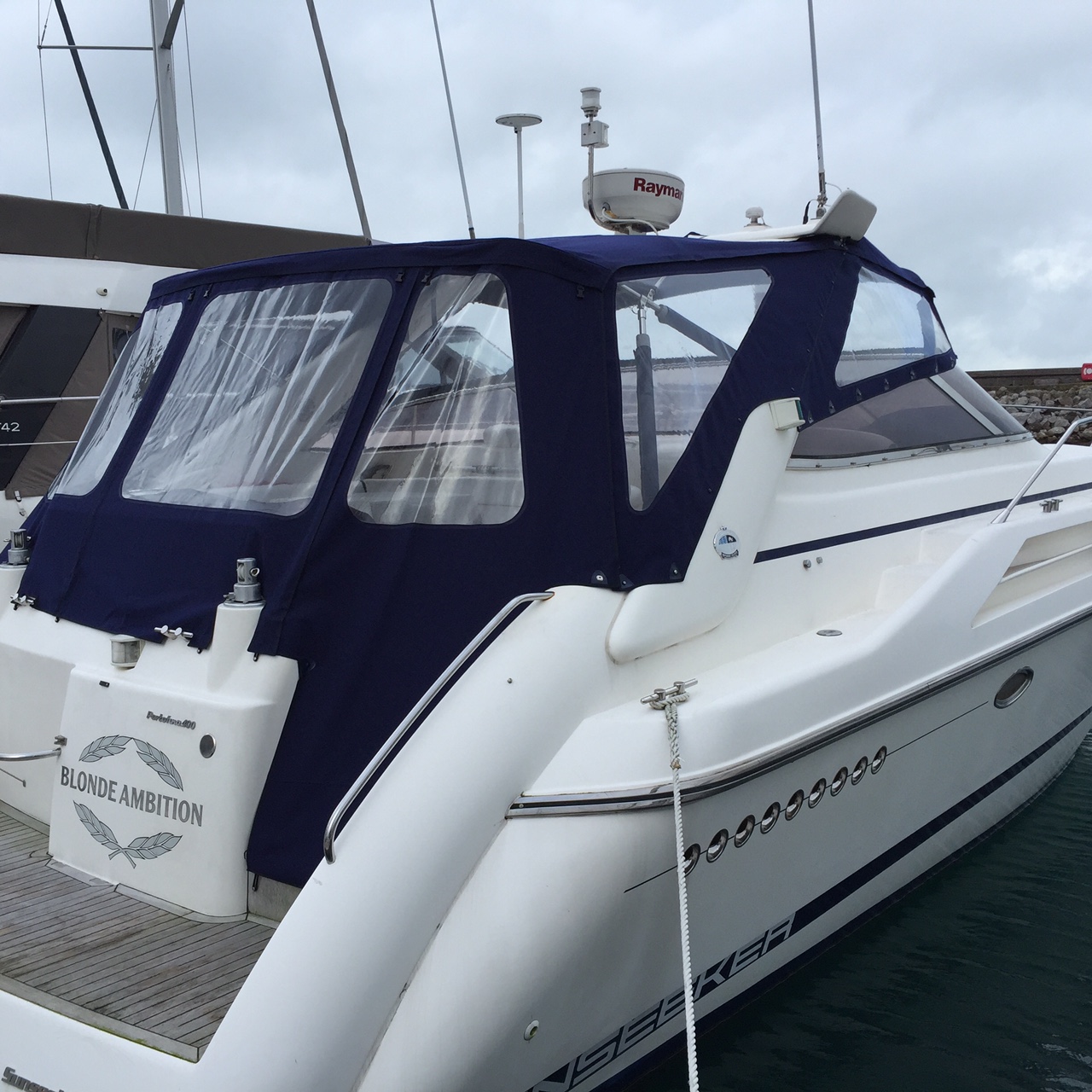 Due to variations during the build of this model we can only supply an 80% finished cover which will need some sewing work to complete. The roof sections and rear doors are complete, the side curtains and windscreen have all the windows and zips installed, but professional assistance will be required to finish the edges of the screen and side curtains, where the cover attaches to the boat and the fixings installed. All the parts, fittings and tools are supplied to complete this work. (see fitting instructions for types of fixings) This part requires the Camper Framework.