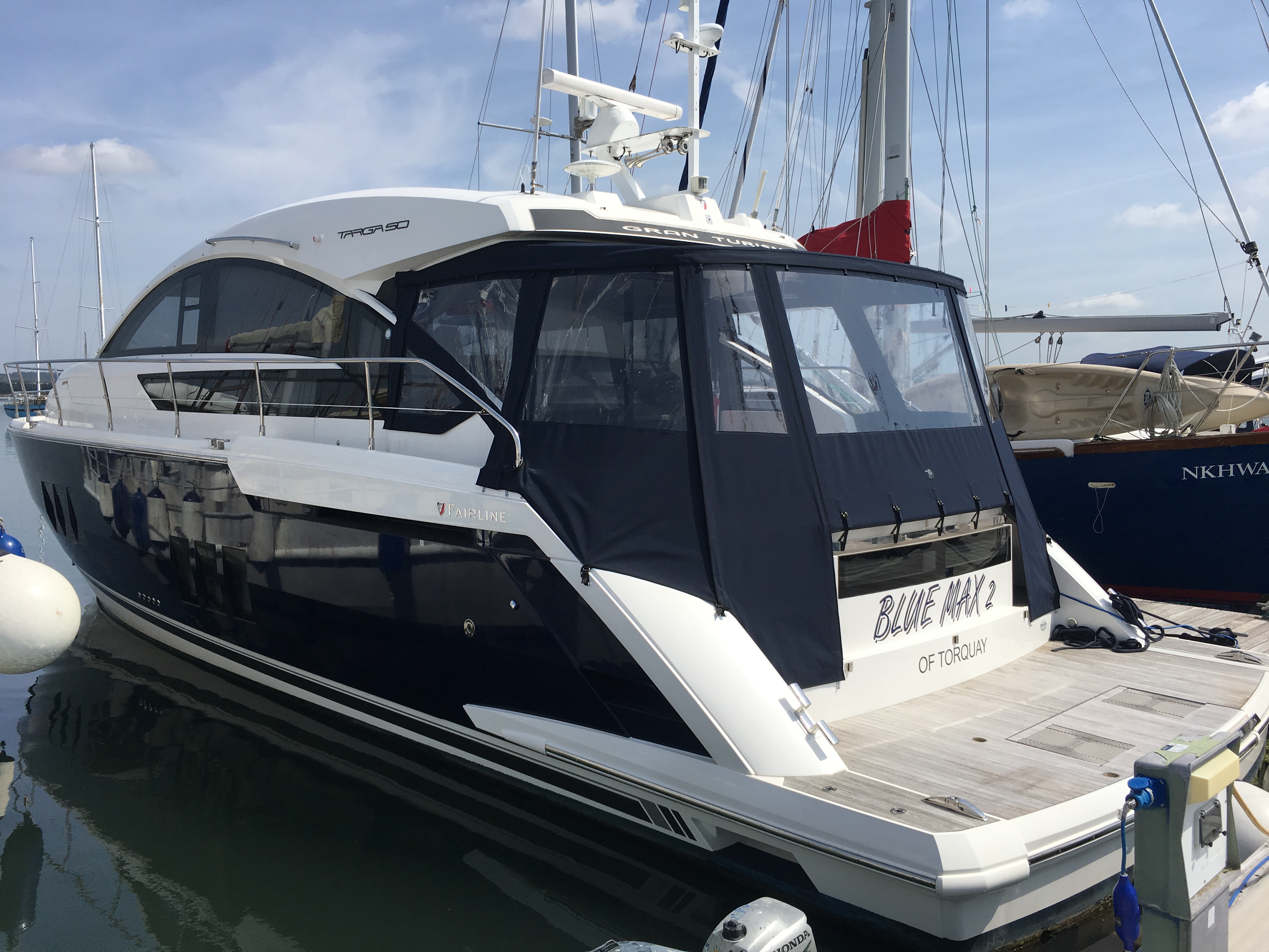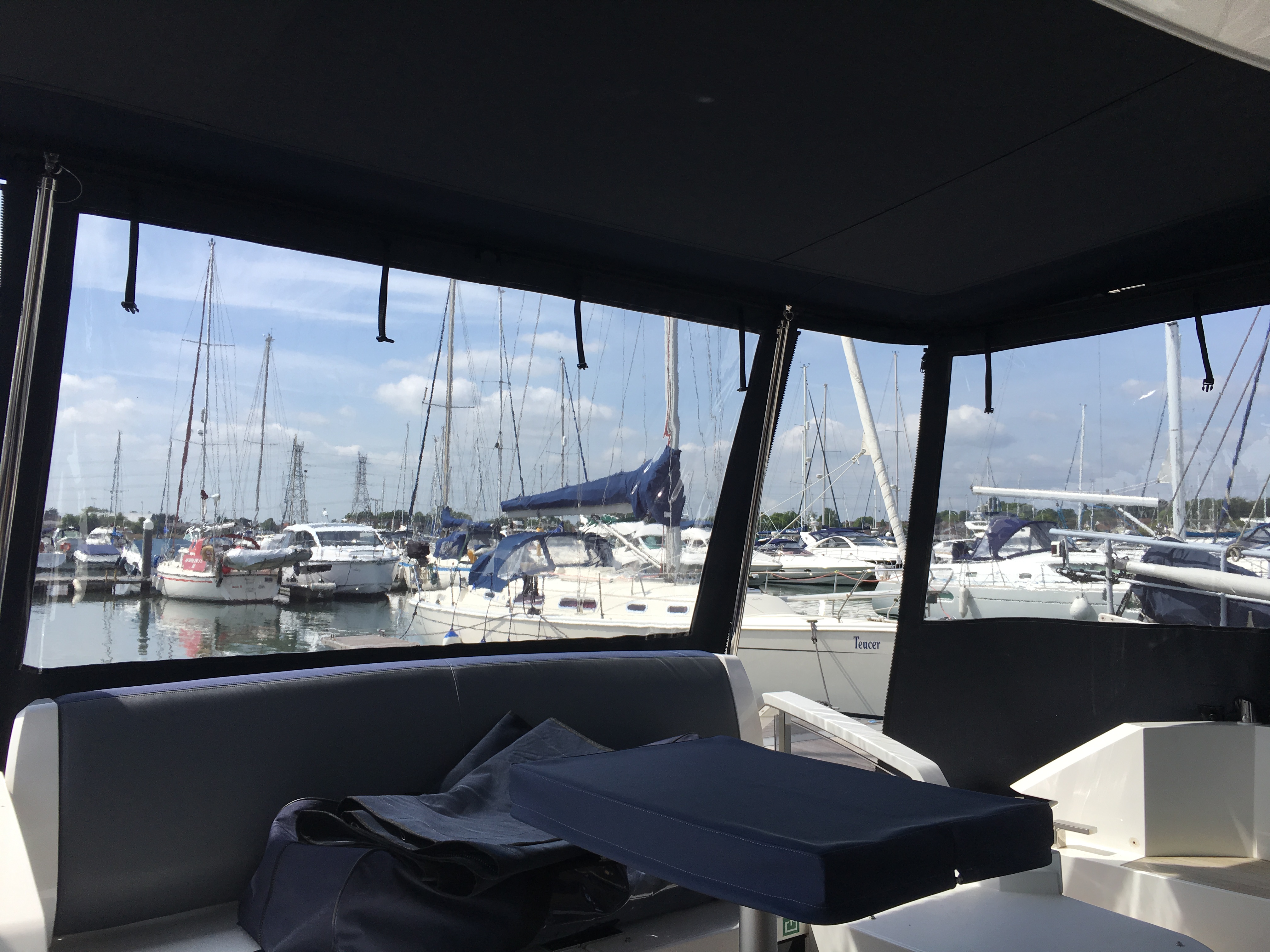 The Full Height Cockpit Camper is supplied as original, manufactured from a choice of Sunbrella Plus fabric… The cover gives Full Standing Height in the cockpit, and is designed to create an additional living space in the entire cockpit. This particular version, covers from the top of the cockpit overhang to the rear of the cockpit, supplied with Sun Awning, removable sides and rear, with zip doorway access, and with a full set of windows.