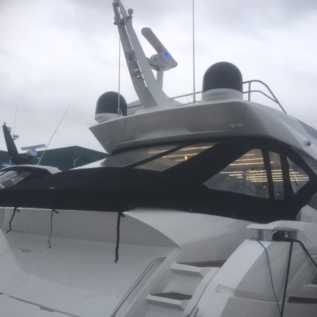 The Cockpit Camper is supplied as original, manufactured from a choice of Sunbrella fabric or Standard PVC… The Cockpit Camper cover is designed to cover the entire cockpit. It covers from Flybridge overhang to the rear of the cockpit, supplied with zip access doorways, and with a full set of windows.