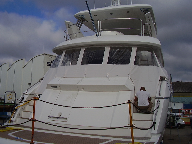 The Cockpit Camper is supplied as original, manufactured from a choice of Sunbrella fabric or Standard PVC… The Cockpit Camper cover is designed to cover the entire cockpit. It covers from Flybridge overhang to the rear of the cockpit, supplied with zip access doorways, and with a full set of windows.