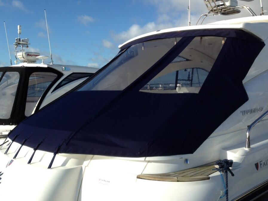 The Cockpit Camper is supplied as original, manufactured from a choice of Sunbrella fabric or Standard PVC… The Cockpit Camper cover is designed to cover the entire cockpit. It covers from Hard Top overhang to the rear of the cockpit, supplied with zip access doorways, and with a full set of windows.