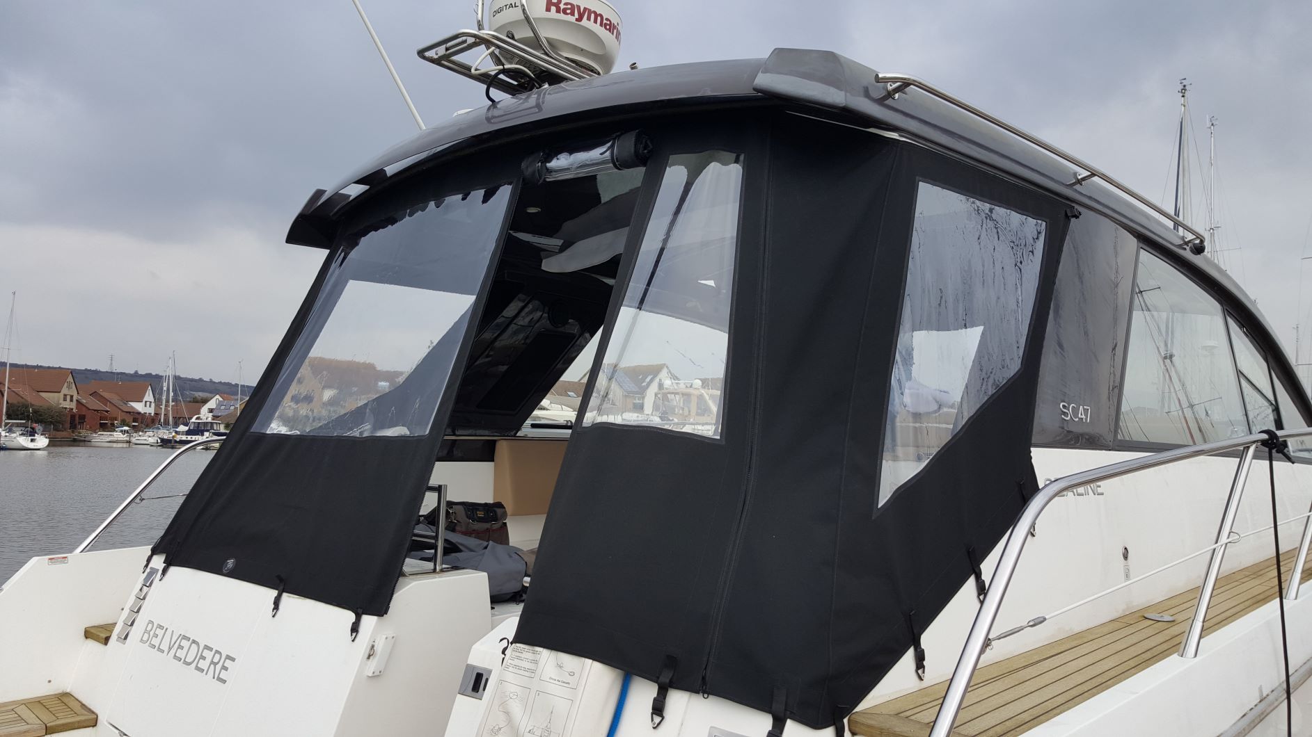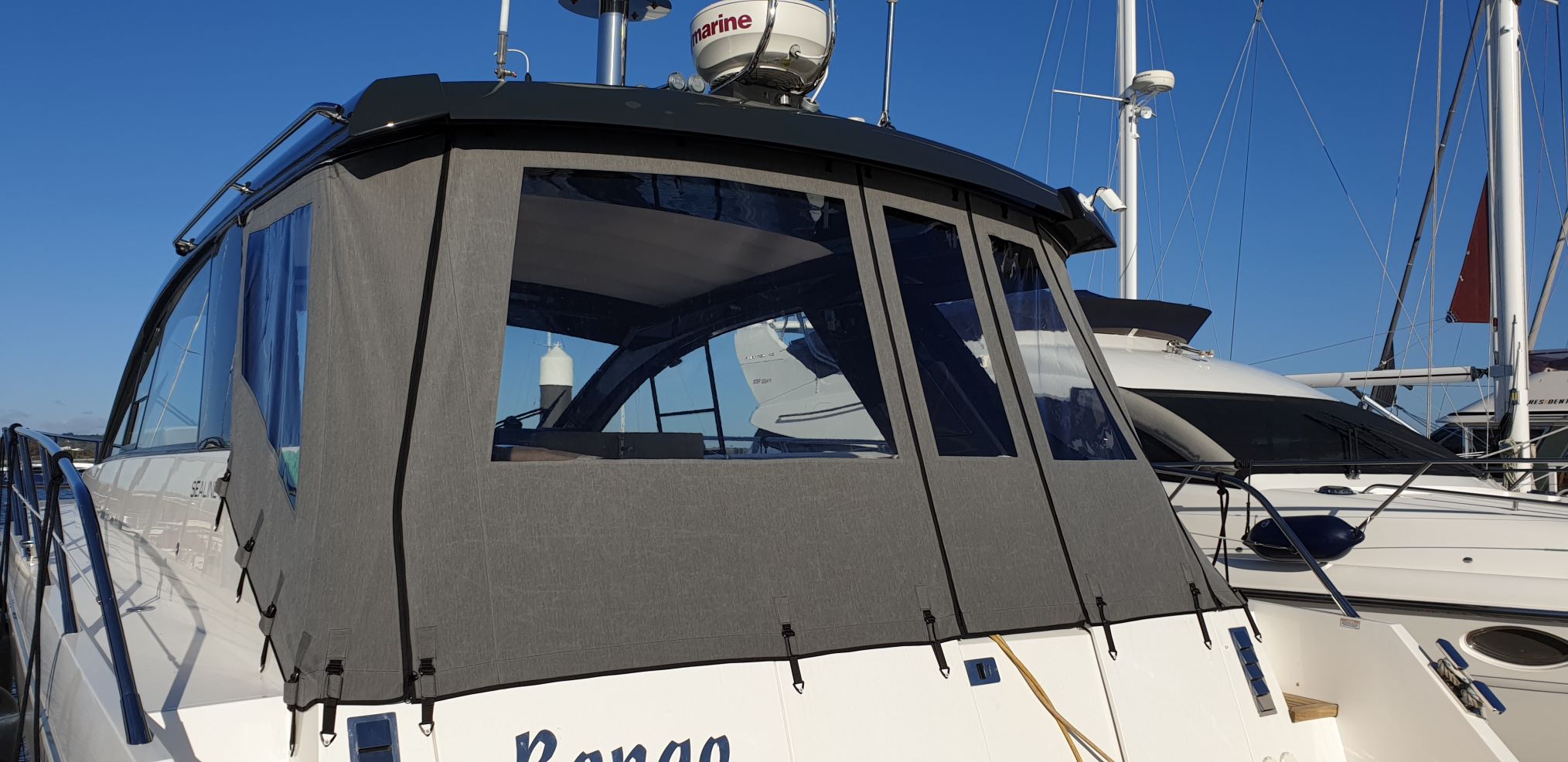 The Cockpit Camper is supplied as original, manufactured from a choice of Sunbrella fabric or Standard PVC… The Cockpit Camper cover is designed to cover the entire cockpit. It covers from Hard Top overhang to the rear of the cockpit, supplied with zip access doorways, and with a full set of windows.