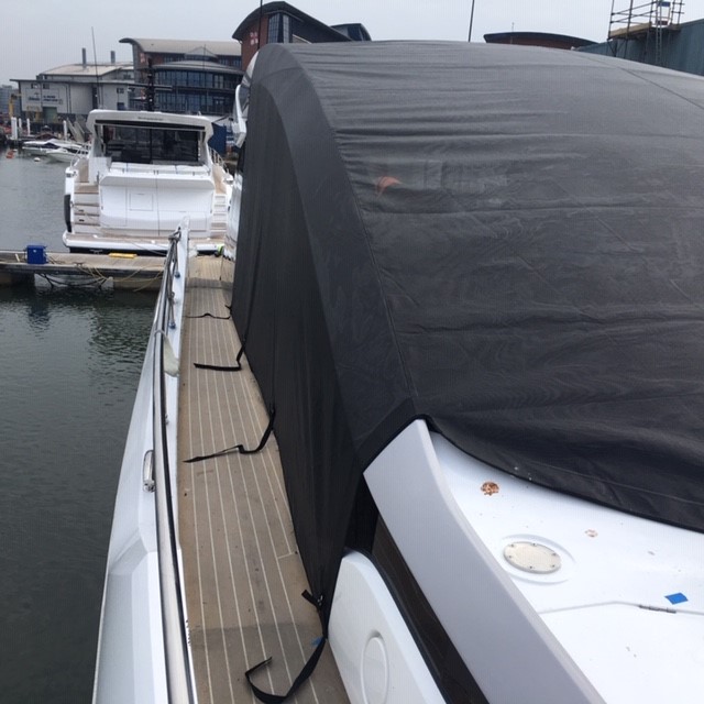 This Screen Cover Set is supplied as original, manufactured from a choice of Sunbrella Plus fabric, Sunshade or Standard PVC… The Windscreen cover set is designed to give an element of privacy and shade to the forward part of the saloon and the cockpit helm position.