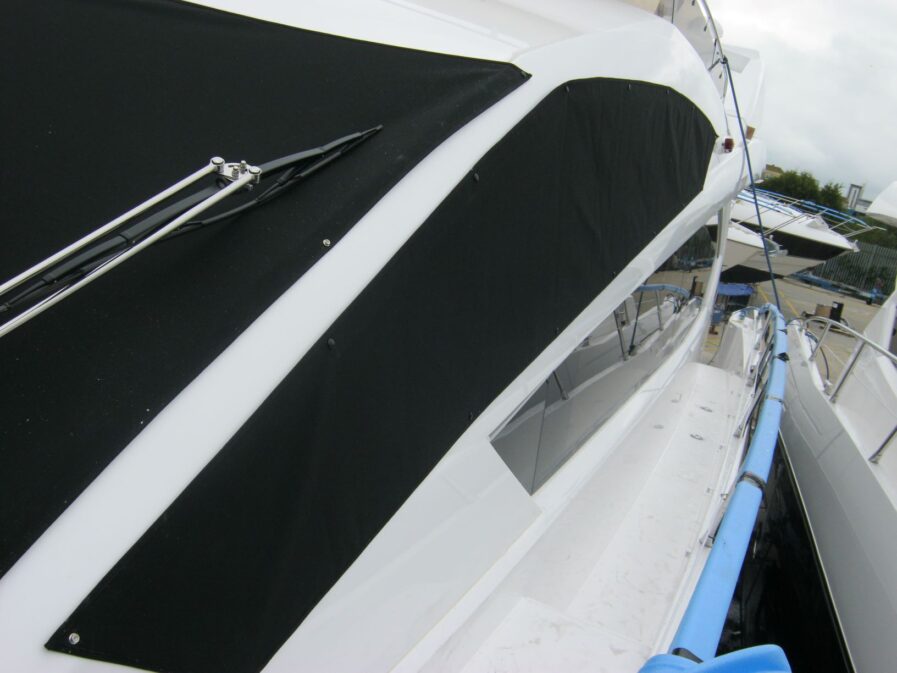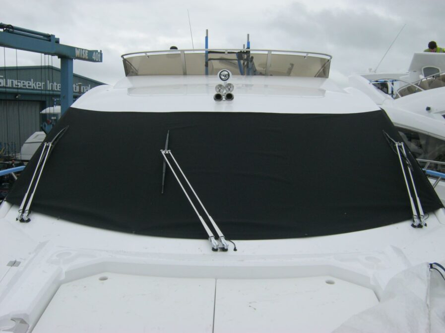 This Screen Cover Set is supplied as original, manufactured from a choice of Sunbrella Plus fabric, Sunshade or Standard PVC… The Windscreen cover set is designed to give an element of privacy and shade to the forward part of the saloon and the cockpit helm position.