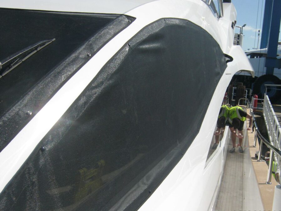This Screen Cover Set is supplied as original, manufactured from a choice of Sunbrella Plus fabric, Sunshade or Standard PVC… The Windscreen cover set is designed to give an element of privacy and shade to the forward part of the saloon and the cockpit helm position, extending the full length of the top side screens.