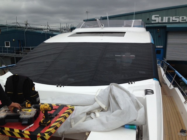 This Screen Cover Set is supplied as original, manufactured from a choice of Sunbrella Plus fabric, Sunshade or Standard PVC… The Windscreen cover set is designed to give an element of privacy and shade to the forward part of the saloon and the cockpit helm position.