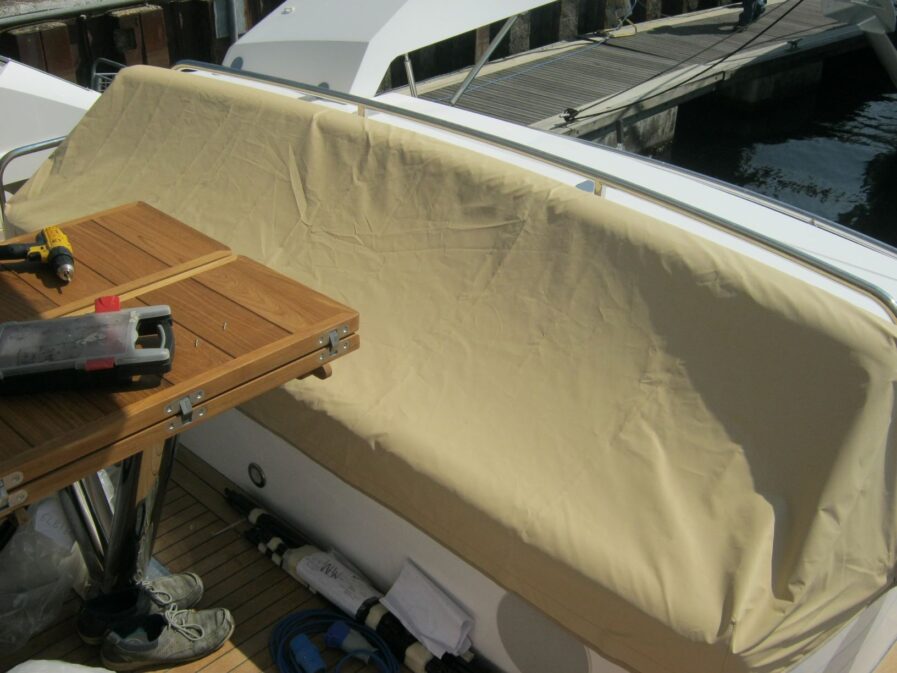 The Cockpit Seat Cover Set will not have the fixings fitted into the canvas. A fixing kit is supplied, with cover fittings and fixing tools. This cover was not supplied as original, so fixings may need to be drilled to the boat. Webbing straps and elastics will come fitted in the canvas. (see fitting instructions for types of fixings)