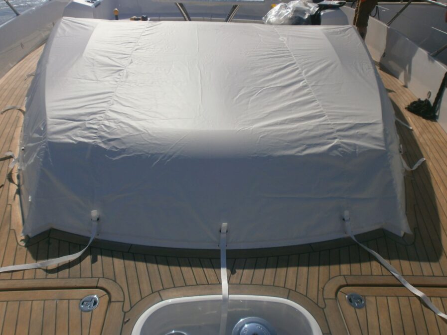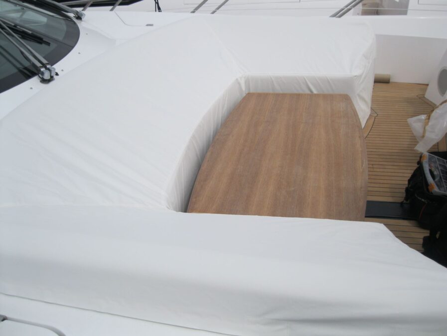 The Foredeck Seat Cover Set can be manufactured from Light Weight Valmex PVC… The Cover Set is a series or one seat cover(s), designed to be a quick option to cover the seating & sunpad on the Foredeck.