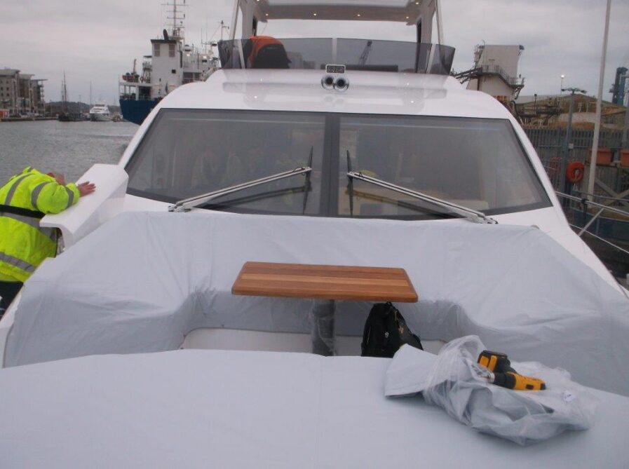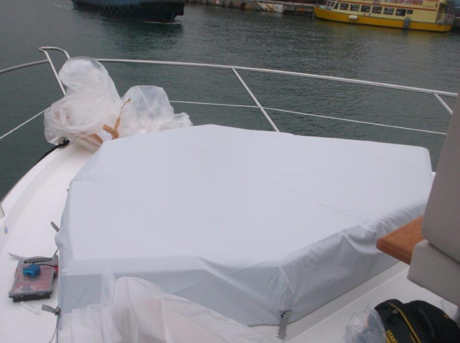 The Foredeck Seat Cover Set can be manufactured from Light Weight Valmex PVC… The Cover Set is a series or one seat cover(s), designed to be a quick option to cover the entire seating in the Foredeck.